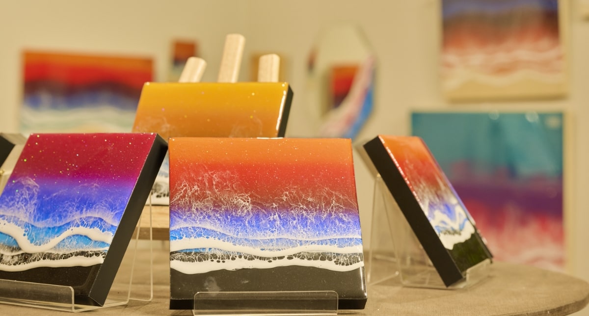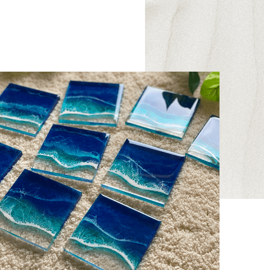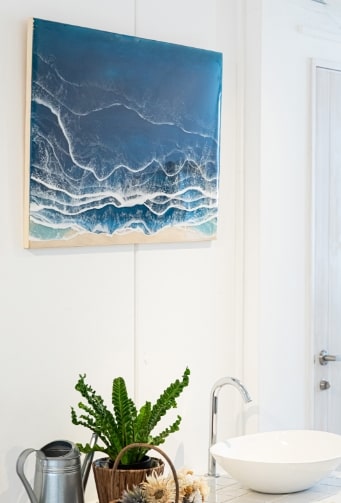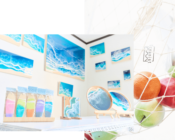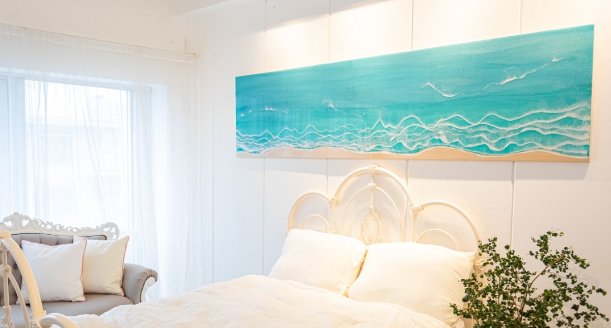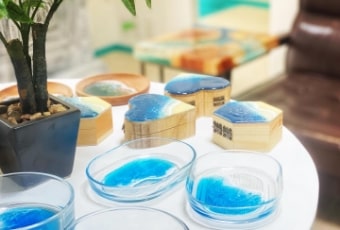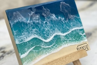 壮大な海の広さと波の音まで聞こえてきそうなレジンで作られたオーシャンアートは、